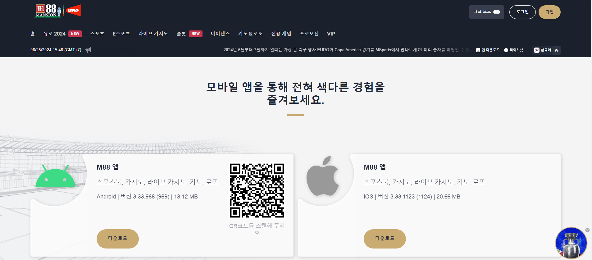 M88 베팅 사이트에서 제공하는 QR 코드를 스캔하는 간단한 방법으로 앱을 다운로드할 수 있습니다. 이 접근 방식은 다운로드 과정을 매우 간편하게 만들어, 사용자가 앱을 신속하게 설치하고 그 혜택을 즐길 수 있도록 합니다.