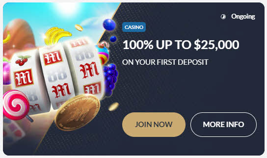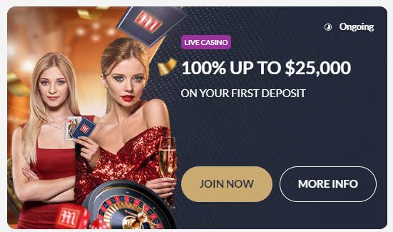 | ? Welcome Bonus | Casino 100% up to $25,000, Sports 100% up to $888, Live Casino 100% up to $25,000 |